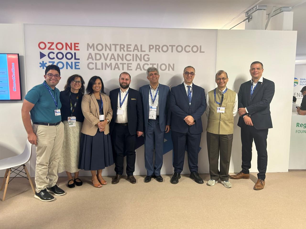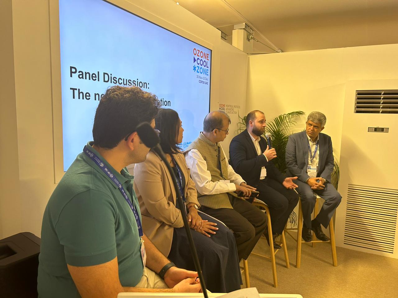 Of the 366 official side events, Eurovent Middle East partnered up with UNEP to jointly host two. The first, held on 3rd December in the Montreal Protocol Advancing Climate Action Pavilion (Ozone Cool Zone), consisted of a roundtable on technical developments in cooling for hot ambient temperature countries, called “Low Emission Cooling in HAT Countries: Technical Developments.” The roundtable covered the conundrum of dealing with extreme temperatures and increased cooling demand, resulting in a vicious cycle of increased greenhouse gas emissions.