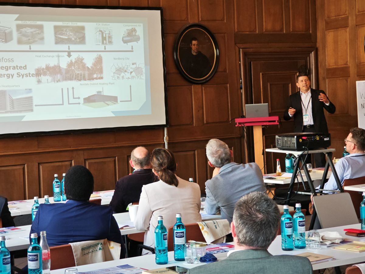 Talking about Danfoss’s decarbonisation goals, Jörg introduced delegates to the Danfoss Nordborg Campus which reached CO2 neutrality in 2022. Explaining how they reduced both energy and heating demand, while re-using energy and shifting to green energy sources, the project demonstrated the timeline and solutions for decarbonising buildings.