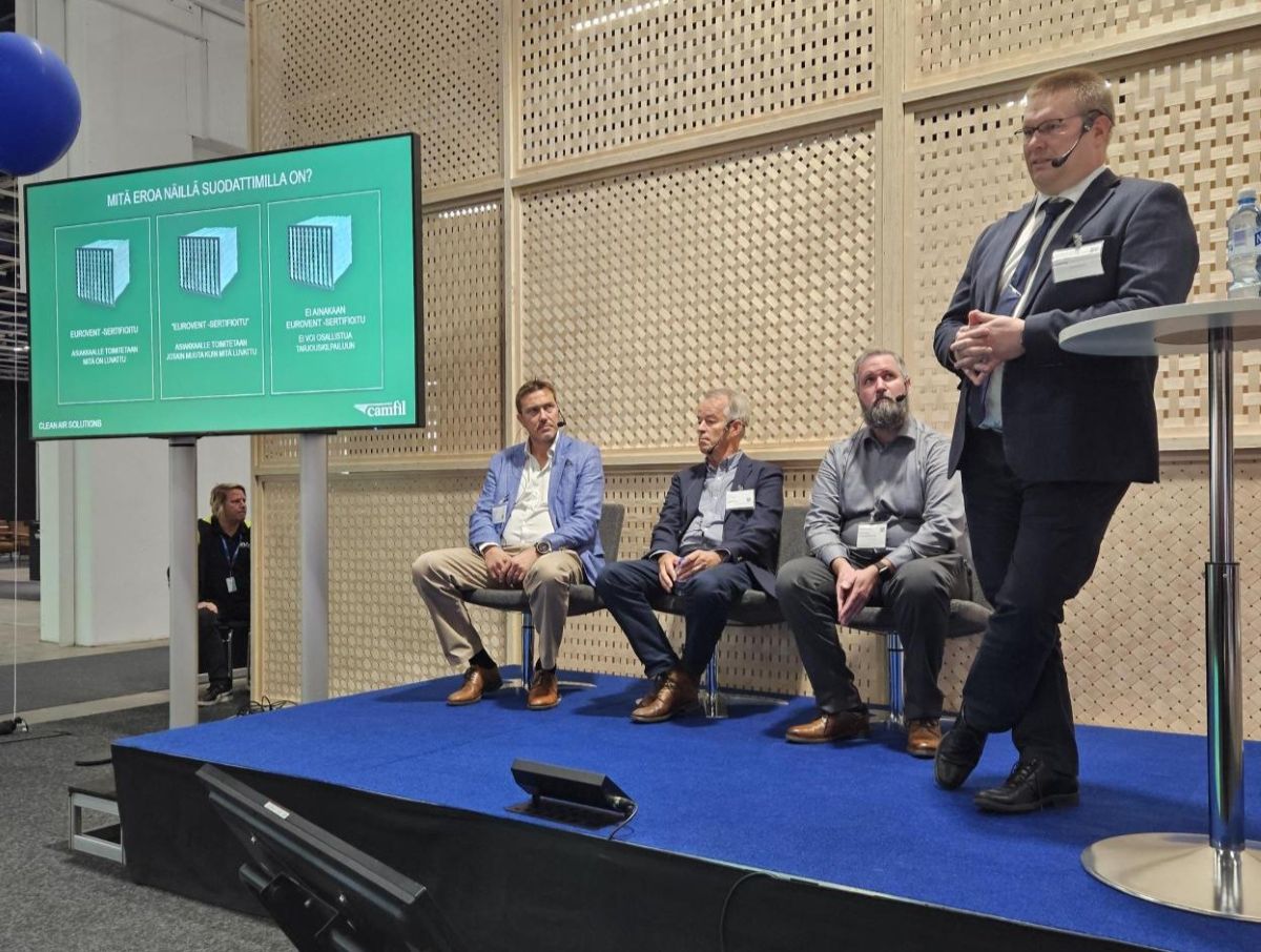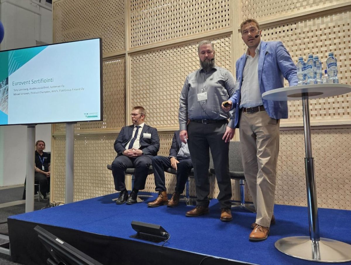 When it was time to present, Timo Schreck, consultant for Eurovent Certification, was joined on the stage by special guests Tony Lönnberg from Systemair, Mikael Virtanen from Flakt and Jukka Linjama from Camfil. Our thanks go to Tony, Mikael and Jukka as well as all of those who attended the session.