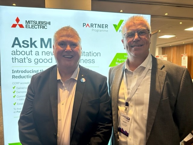 Martin Fahey, Head of Sustainability UK & Ireland at Mitsubishi Electric, provided a great presentation titled ‘Contractors – net zero is impacting your business now. The net zero opportunity!’ Martin outlined how imperative it is to change to achieve the goals of 2050. He identified the three scope groups to the Green House Gas Protocol (GHG), these being; reporting company activities (scope 1 & 2) i.e. company facilities, company vehicles, purchased heating and cooling; then upstream activities (scope 3) i.e. fuel / energy, business travel, transportation and distribution, and finally downstream activities i.e. processing of sold product, use of sold products investments, end of life treatment.