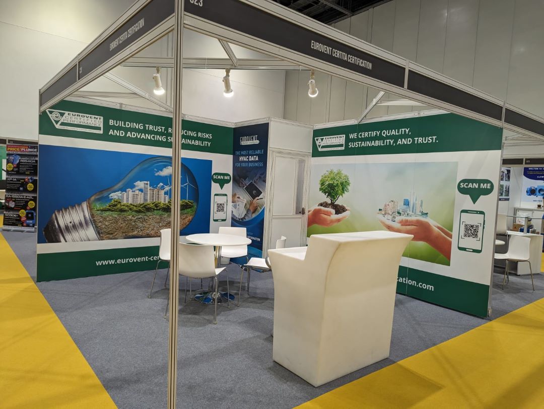 After a COVID-19 enforced break, it was the turn of the UK’s HVAC & Refrigeration Live to reopen its doors from the 18th-19th April, at the ExCel London. Eurovent Certita Certification (ECC) exhibited at the 2-day event, with colleagues from Eurovent Association and Eurovent Market Intelligence (EMI) manning the exhibition stand. The team also got involved in the seminar programme with ECC’s Business Partnership Manager, Ian Butler, presenting on the importance of reliable air handing unit data, while EMI’s Market Intelligence Analyst, Beyza Aykurt compared the British vs European HVACR market.