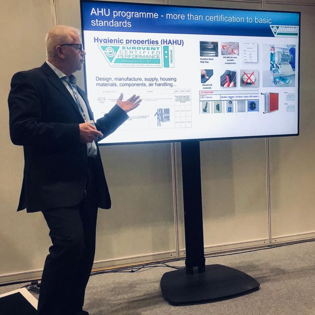 Moving onto Ecodesign Regulations and the ErP Directive, Ian discussed the woeful level of market surveillance and compliance checking, along with the lack of verification of actual energy efficiency. Warning the audience not to assume that all product data provided is correct, Ian next gave examples of real-life test results from non-certified products, showing how vital it was to use manufacturers whose product data had been independently verified by an accredited organisation. Explaining the various levels of voluntary certification - and its impact on reducing the risk of non-compliance and excess energy consumption - Ian went on to further discuss the role and process of Eurovent Certified Performance, and certification programmes for AHUs and Hygienic AHUs.