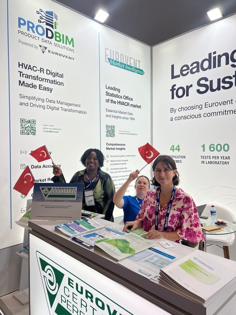 It was a big show for the team, which featured the Eurovent Certified Performance Programme for Hygienic Air Handling Units, a presentation on “Unlocking IAQ Excellence: Hygienic AHU Market & Certification with Eurovent,” and the opportunity to strengthen the partnership between ProdBIM, Eurovent Certita Certification and ISKAV (Isıtma Soğutma Klima Araştırma ve Eğitim Vakfı). Celebrations for the 100th anniversary of the Turkish Republic were also in full swing throughout the show, adding to the excitement at the exhibition.