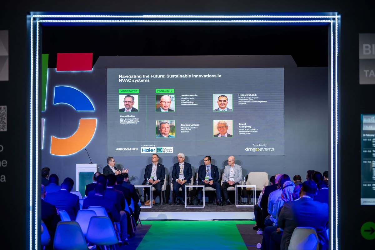 Joining Markus on the panel for ‘Navigating the future: Sustainable innovations in HVAC systems’, was Sherif Albegirmy, Senior Project Director of Saudi Binladin Group Construction, as moderator; Firas Obeido, Chief Executive Officer of E2E Energy Efficiency Arabian (SMARTAE); Hussein Shoaib, HVAC and Energy Projects Department Head of Innovative Facility Management Services; and Anders Norén, Strategic Alliances Executive of Priva Building Automation Group.